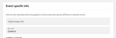 When linking manually, access the attendee list and open the attendee profile you want to link. Scroill down to the section Event-specific info. In the field Bar code, you can enter the numerical bar code.