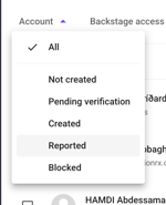 Reported users can be found in the Attendee list in an event or on the Community list at the society level. Below Account, choose Reported to see all reported users at one glance.
