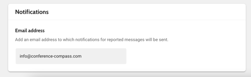 In the Advanced tab within the app settings, enter an email address where notifications will be sent whenever a message or user is reported. This ensures that immediate action can be taken if needed.