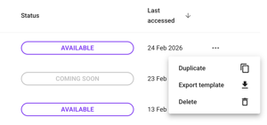 First, you export a template of the existing event. Find the event on the Event list, click the three dots and export the template. A .json file will be downloaded.