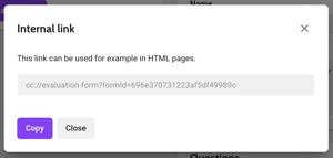 - You can now create an internal link from an evaluation form, so that you link directly to the form from for example a navigation page, information page or news message. Just click the link icon at the top right of the evaluation form page and copy the cc:// link.