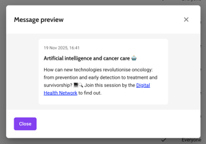 - You can now check a preview of your news message from both the table and the detail page. In the table, click ... and choose Preview. On the detail page, click the Preview button that can be found below the text input field.
