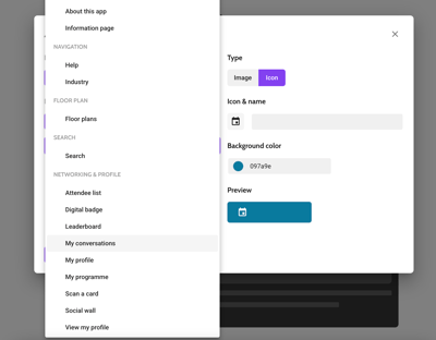 - On the Pages menu item, the category Networking pages now contains more pages. All these pages can now be linked to from any place where you can select a page, for example a home menu navigation button or a bottom menu item on mobile.