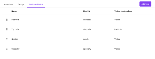 On the Attendees menu item, a new tab Additional fields has been added. On this tab, you can add event-specific text fields.